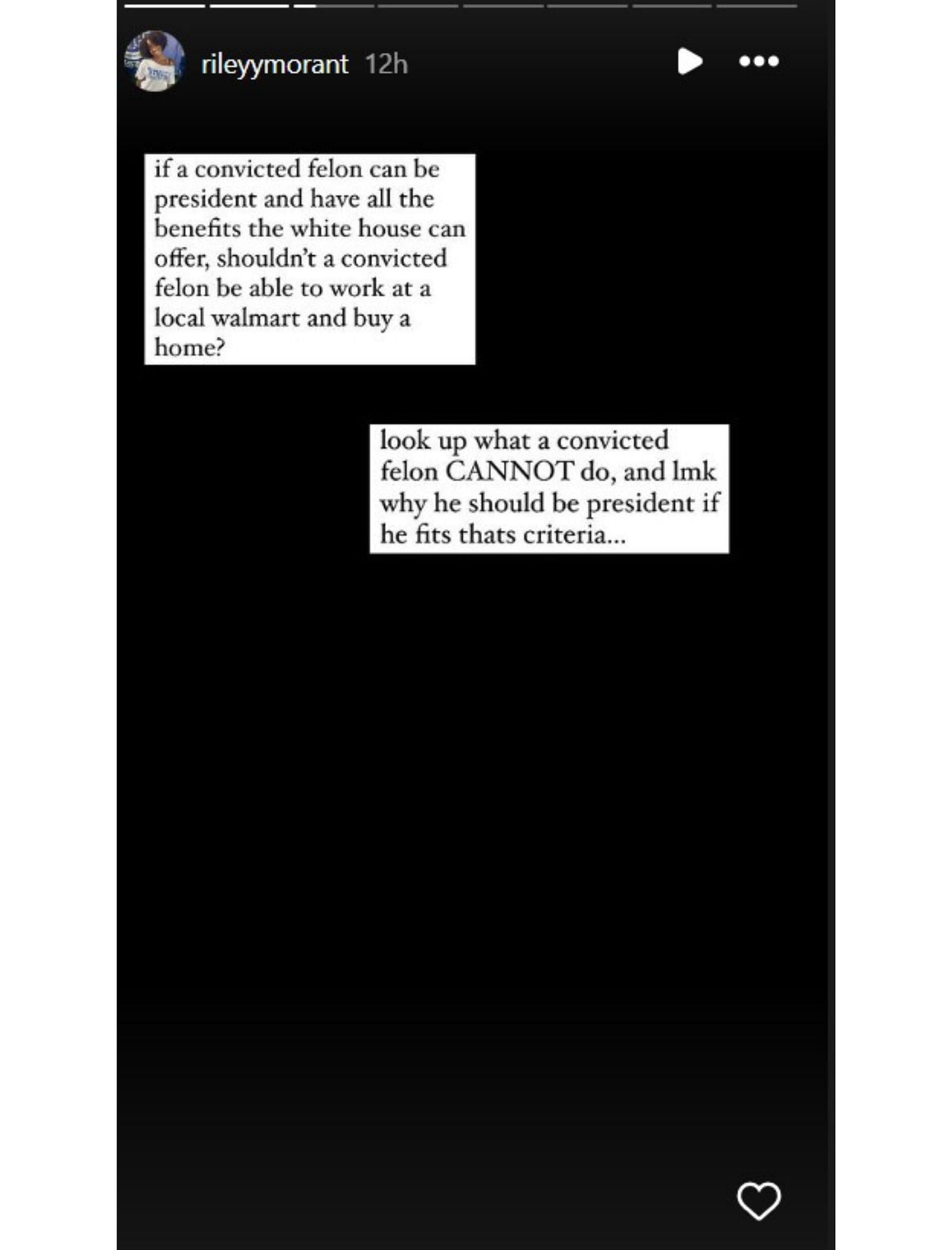 Memphis Grizzlies All-Star guard Ja Morant's sister Riley Morant lamented Donald Trump being elected back to the U.S. presidency following the elections on Tuesday. She made her frustration known by posting a scathing critique on social media on Wednesday.