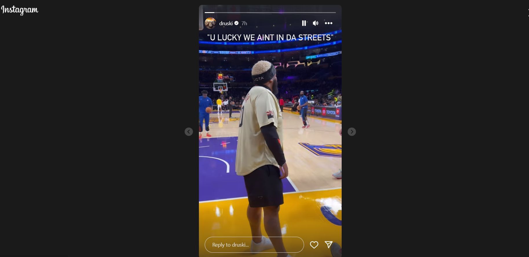 Druski even documented the "trash-talking" where he told Harden, "You['re] lucky we ain't in [the] streets" on his Instagram story, captioning it with the exact thing he said.
