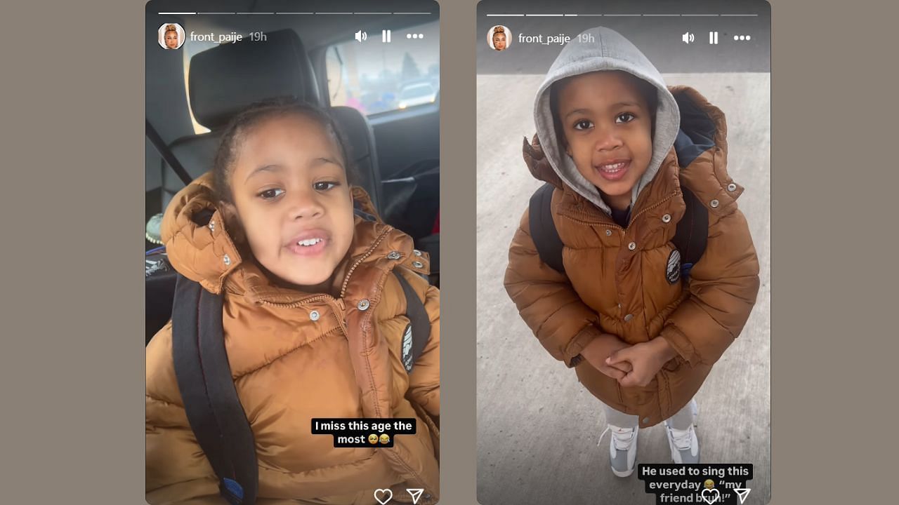The fashion designer shared two videos on her stories. In the first one, the kid is seen sitting in the back of a car and singing a song. Speights asks him who taught him the song, to which he replies that his friend did.