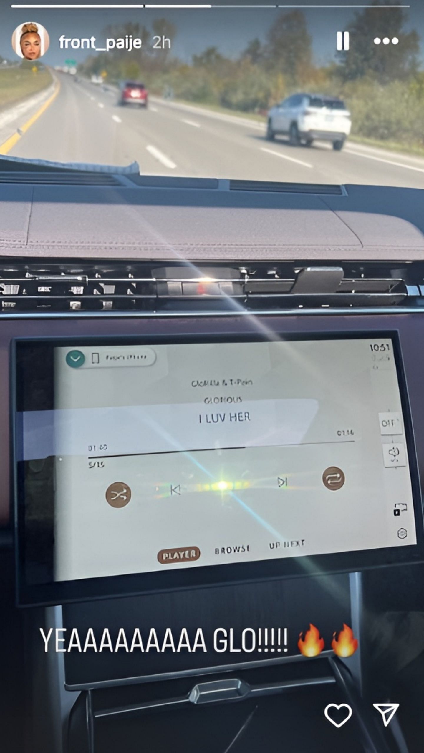 On October 12, Speights posted a picture on her Instagram story. She was listening to American rapper GloRilla's debut album "Glorious" in her car. She was listening to "I Luv her" by GloRilla and T-Pain.