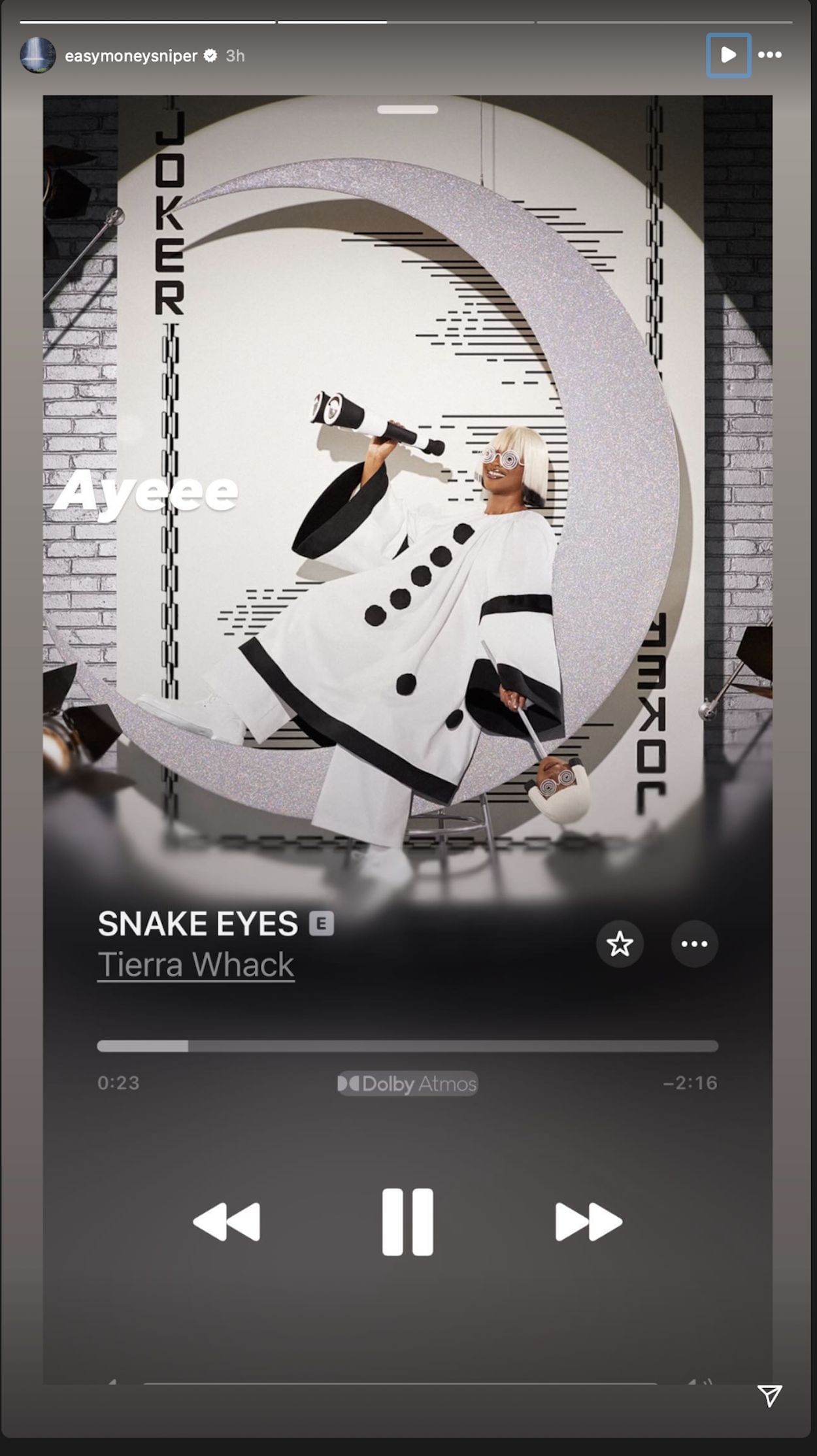 In the second post Kevin Durant made on his story, he shared a screenshot of the song Snake Eyes, simply writing: "Ayeee". In the third, it was more of the same, with KD sharing a screenshot of a song titled Two Night, with the caption: