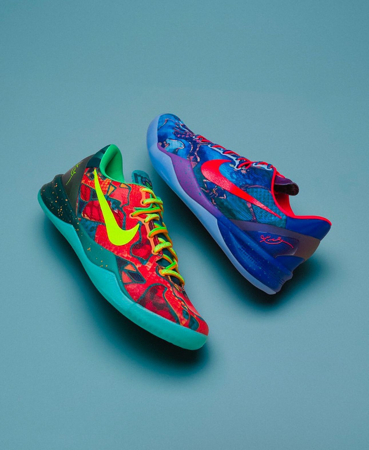 Initially debuting in December 2013 as part of Nike’s “What The” collection, the “What The” Kobe VIII Protro, is a combination of several colorways of the Kobe VIII and is set to re-release on Apr. 13 with a $190 sticker price.