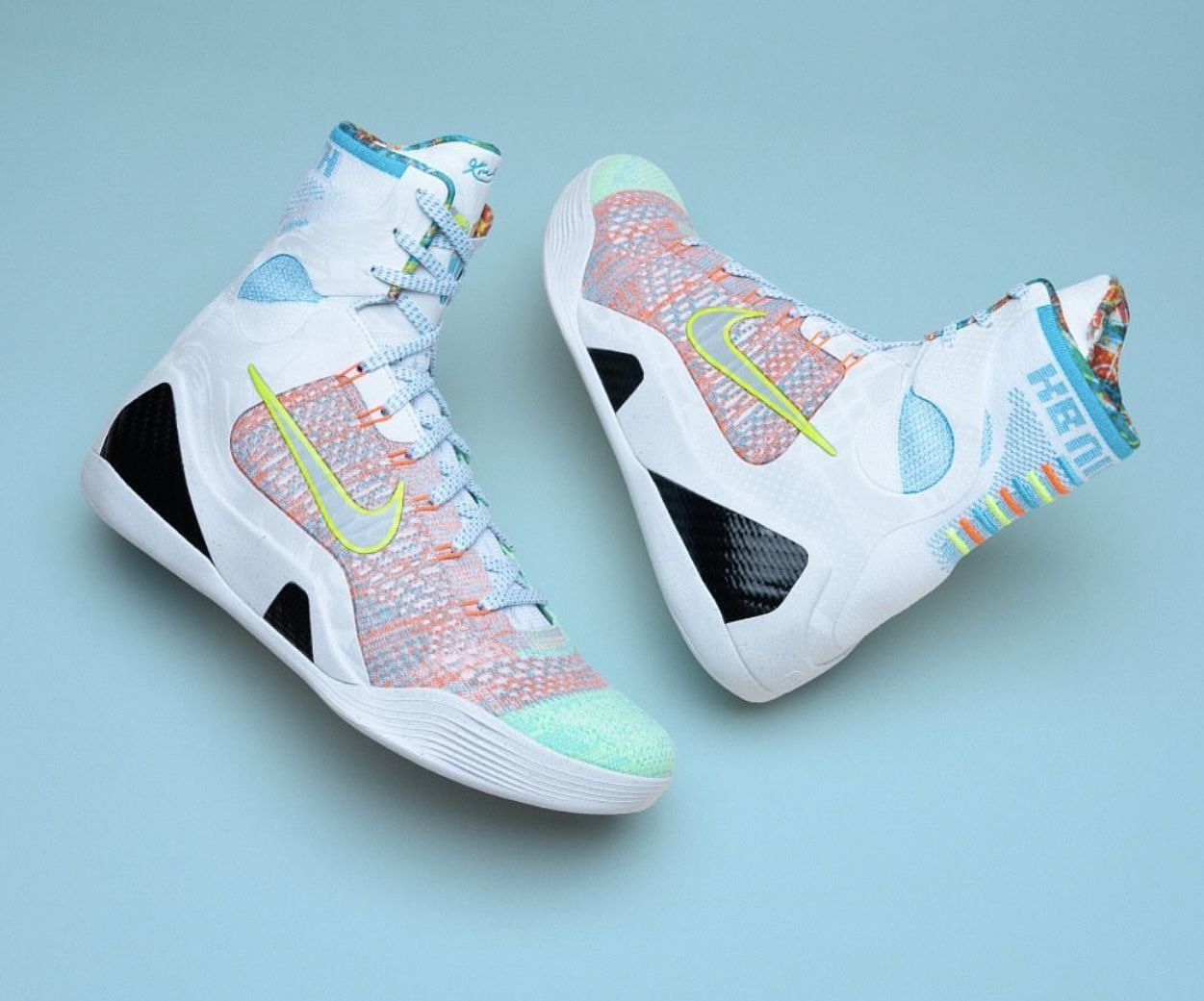The upcoming release roster includes the “What The” Kobe IX Elite High Protro, which features visual aspects of several other colorways of the silhouette. They are planned to be released on Apr. 13 and will command a $300 retail price.