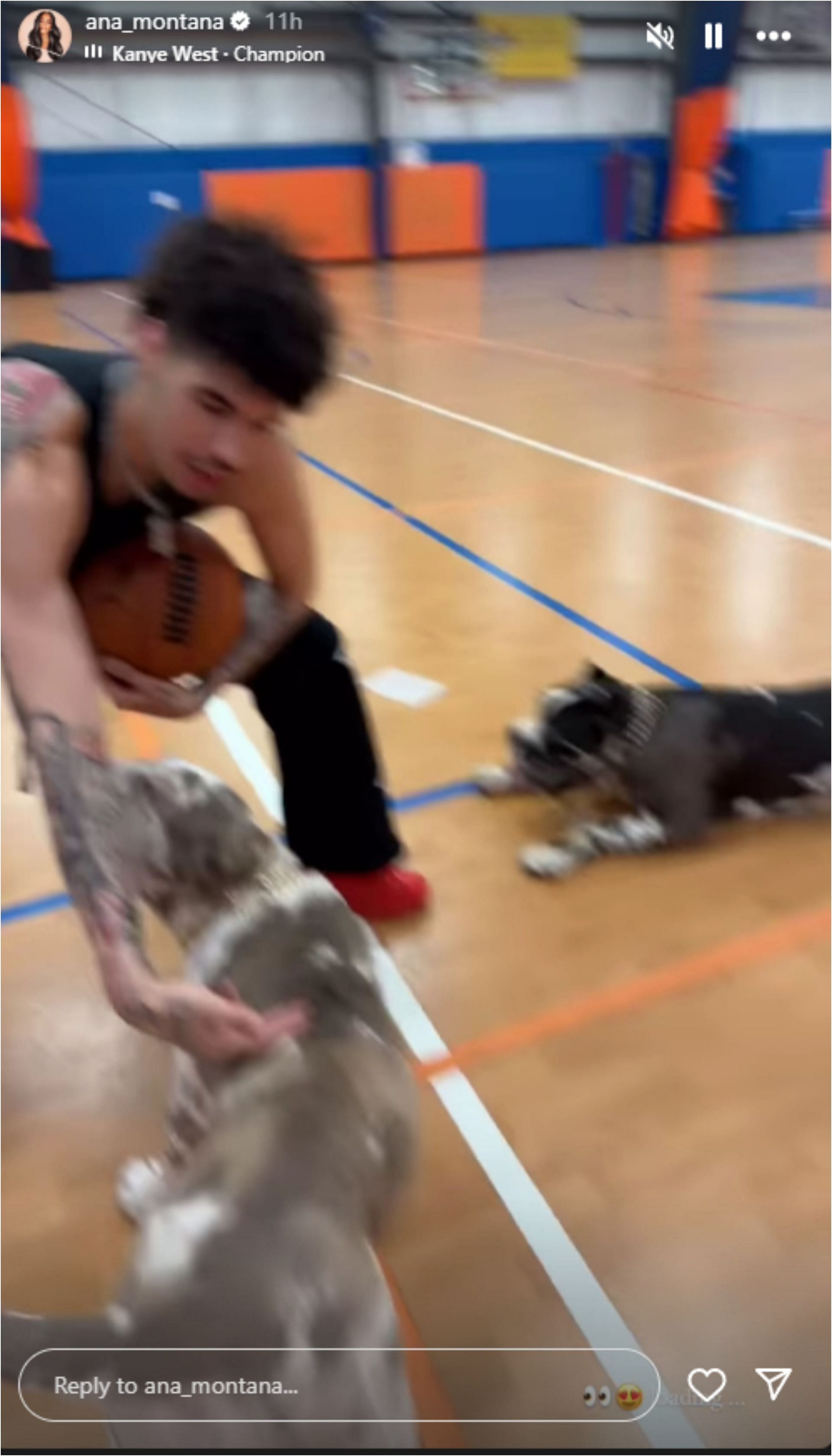 Model Ana Montana, LaMelo's girlfriend, shared a video on her Instagram stories showing Melo at the gym. They were accompanied by their dogs while the player got some shots up. He looked to be in great spirits and shooting the ball well.