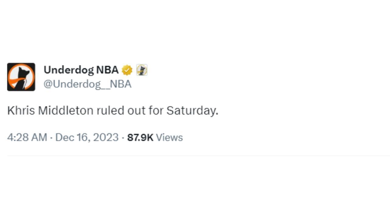 On Nov. 24 against the Washington Wizards, Middleton exited early in the third quarter due to left Achilles tendon tightness. Milwaukee’s training staff is reportedly worried that it will affect his surgically repaired knee if pushed too hard.