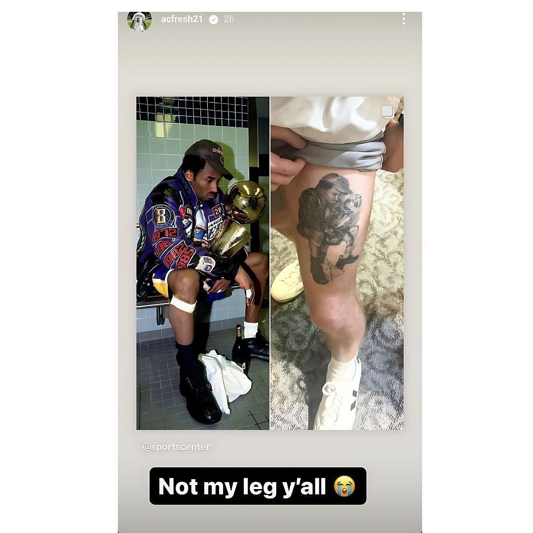 However, in what was a hilarious rumor-killer, Caruso denied getting a famous Kobe Bryant photo tattooed on his leg. He announced it on one of his Instagram stories, following a story of the tattooed leg.