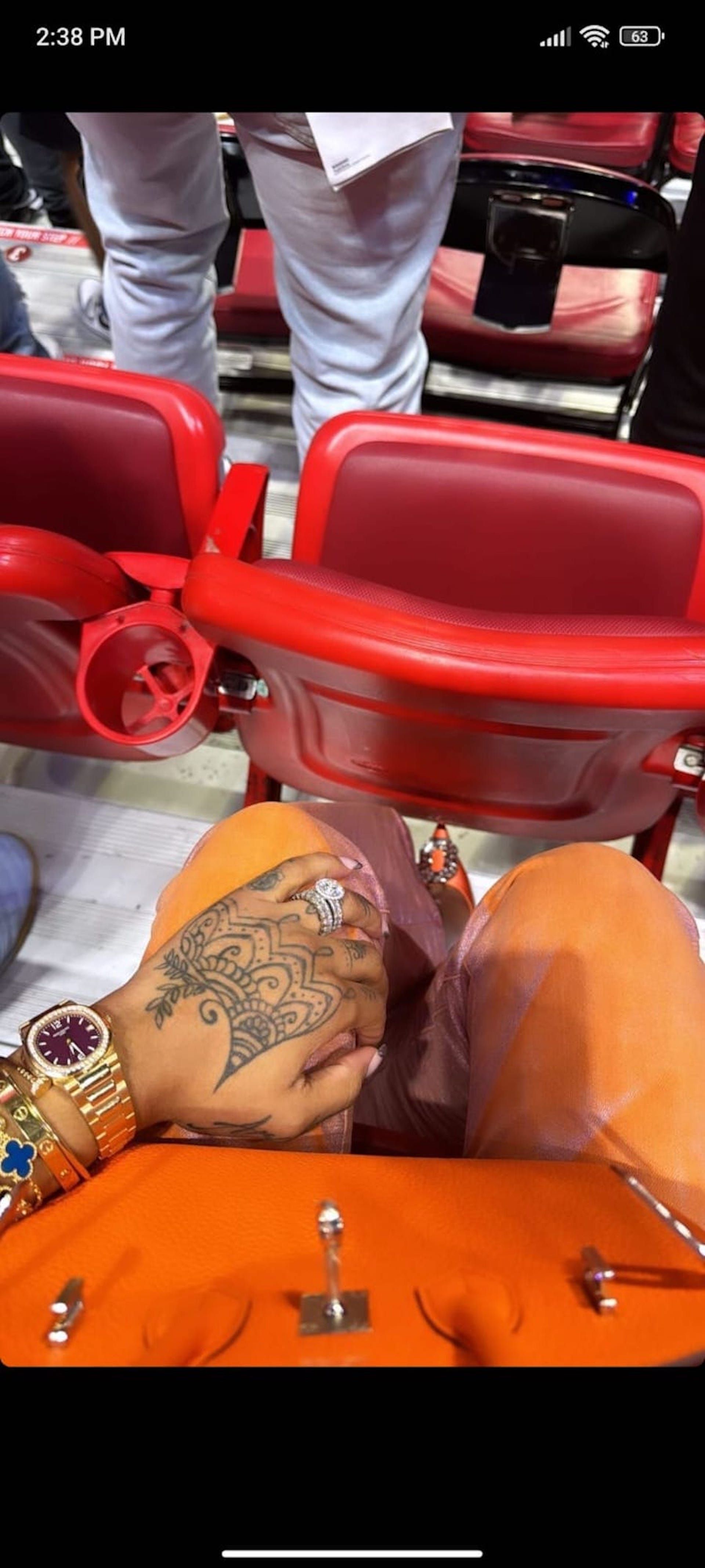 On Wednesday, his wife, Alisah Chanel, was seen sporting an orange Hermès Birkin bag while attending the Mavericks game against the Miami Heat.