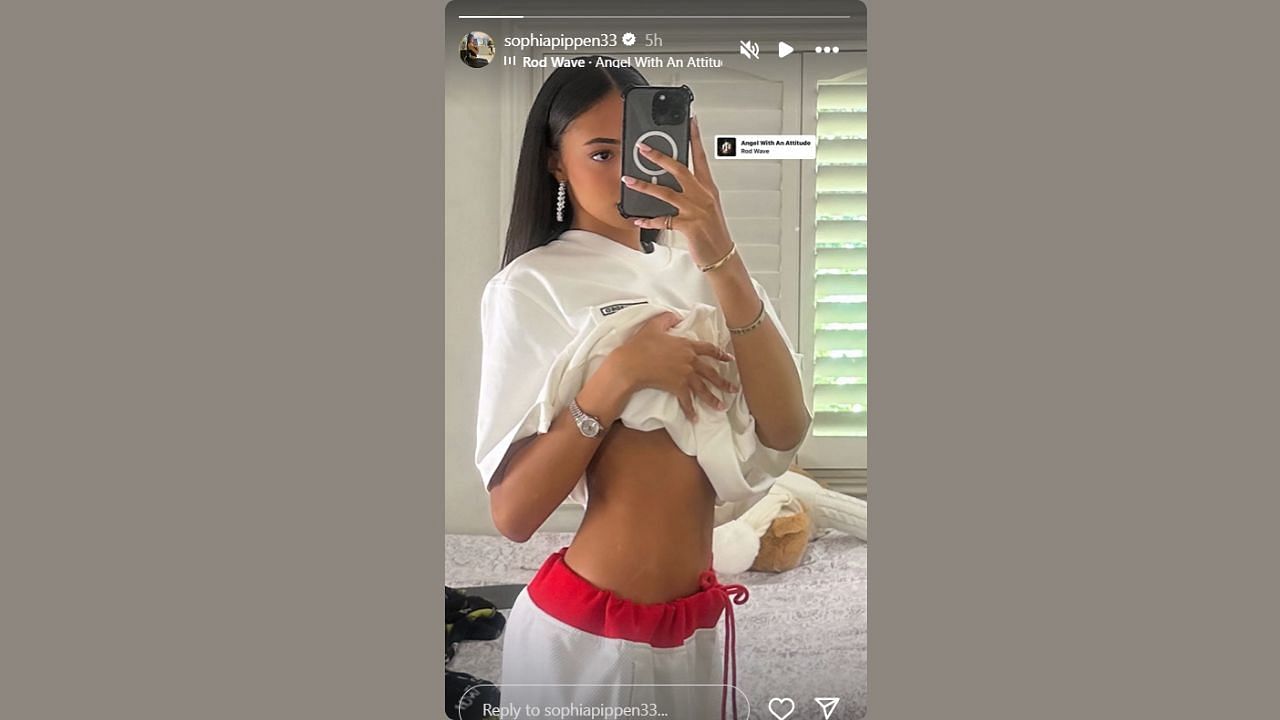 NBA legend Scottie Pippen's daughter, Sophia Pippen, posted an Instagram story showcasing her incredible physique. In the photo, Sophia is standing in front of the mirror while holding her smartphone in front of her face.