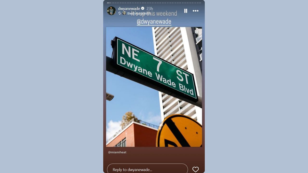 Dwyane Wade shared a post bearing pictures of the street which is named after him, on his Instagram story. Before the unveiling of his statue on Sunday at the Kaseya Center, the Miami-Dade Board of County Commissioners unanimously agreed to rename a part of Northeast 7th Street as Dwyane Wade Boulevard.