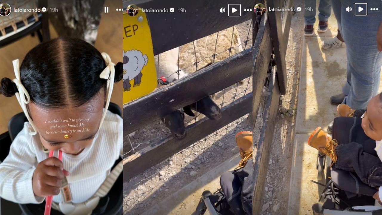 In a following story, Rajon Rondo's wife uploaded a video of Leo sitting on a chair near a barn, with a couple of sheep poking their mouths through gaps in the fence behind her. Following the sheep video, she posted another clip of her daughter holding up a Louis Vuitton handbag in front of the camera.