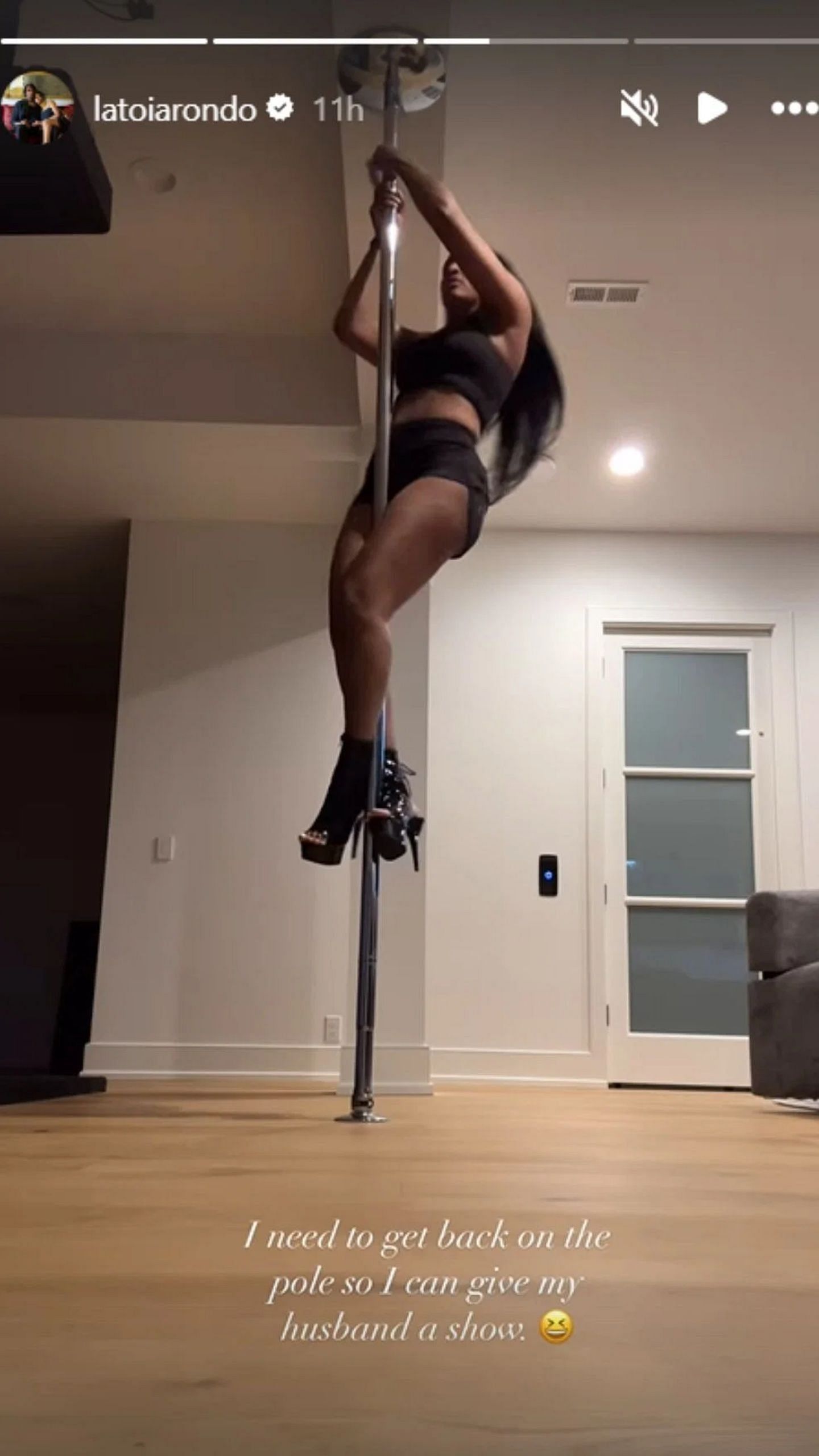 "I need to get back on the pole so I can give my husband a show. 😆" Latoia captioned.