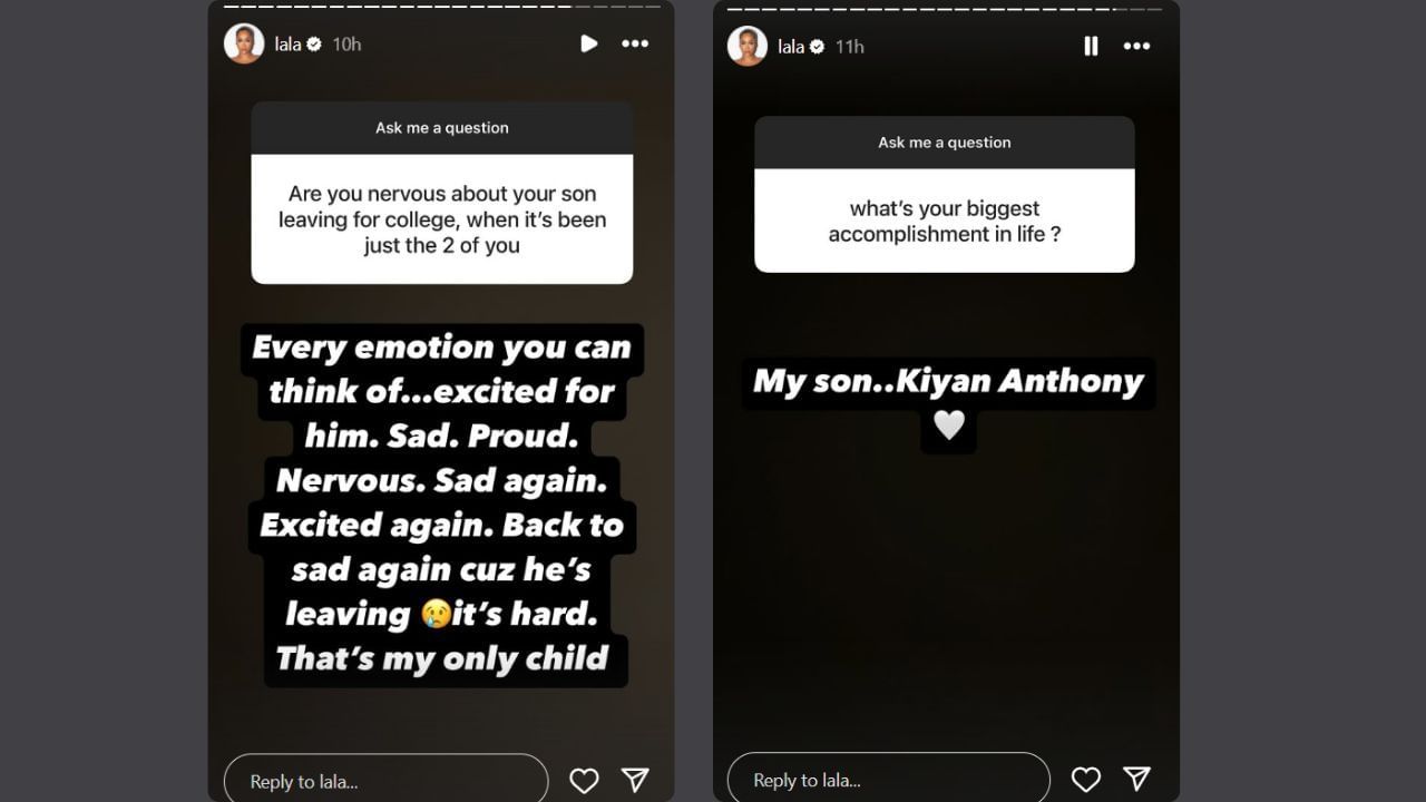 She shared an interactive question sticker on her story, allowing her followers to send her their questions. One fan asked La La if she was nervous about her only son, Kiyan Anthony, leaving for college. The reality TV star penned an emotional response to the question.