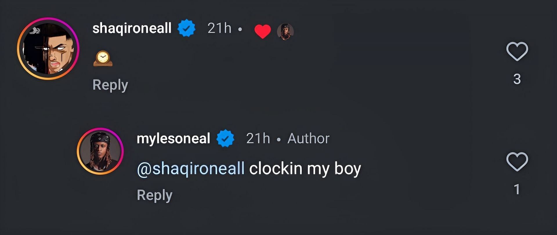 For Shareef, he simply put up a fire emoji, while Shaqir typed a clock emoji, to which he got a reply from Myles: