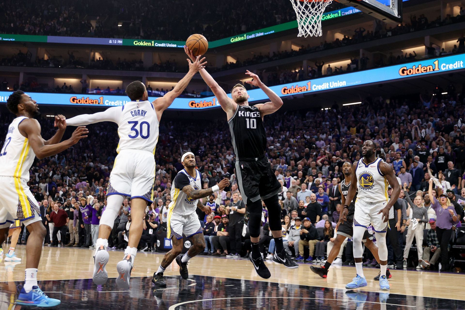 Domantas Sabonis received a lot of painful hits in the Sacramento Kings' 114-105 win over the defending champions. The Golden State Warriors had to endure a tough defense and a bad shooting night, as well as the ejection of Draymond Green in the fourth quarter.