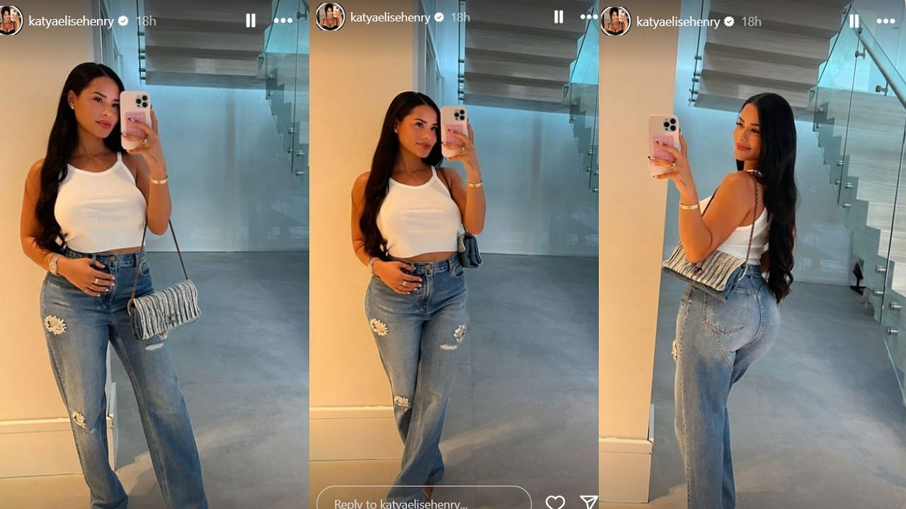 Later, in her other stories, Katya Elise Henry posted pictures of herself. She showed off her fit for her huge audience on Instagram.