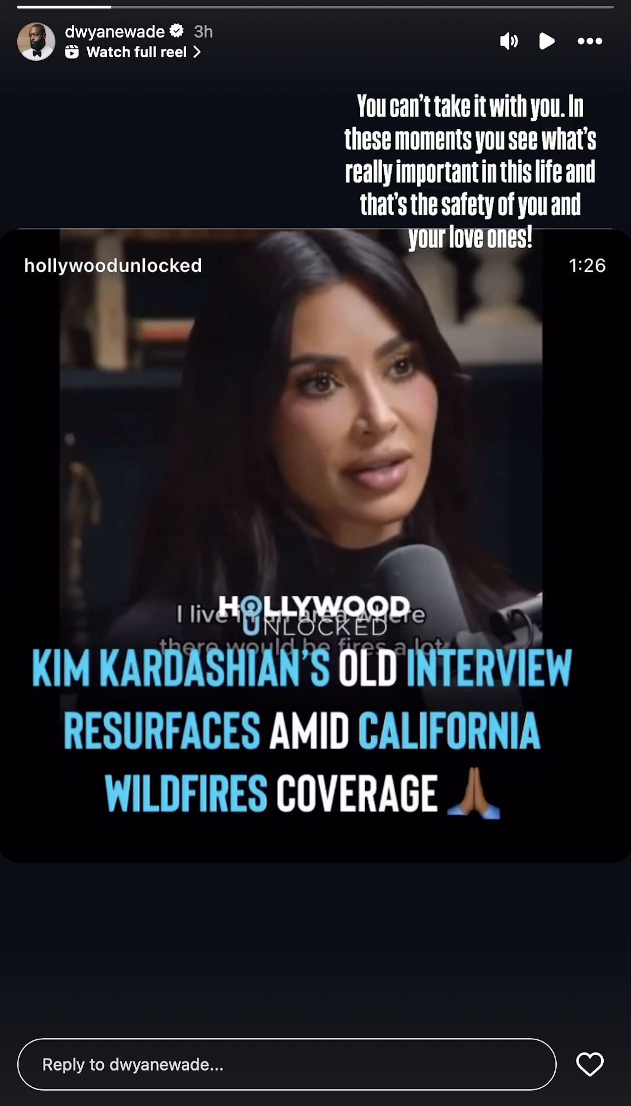 As wildfires continue to rage on in the greater Los Angeles area, Hall of Famer Dwyane Wade took some time to write about what's really important. As the area impacted by the situation continues to grow, and more and more residents are urged to flee, an old clip of Kim Kardashian has resurfaced.