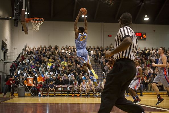 Canadian basketball phenomenon Andrew Wiggins rising high for a dunk at McMaster University in Hamilton. (Getty Images)