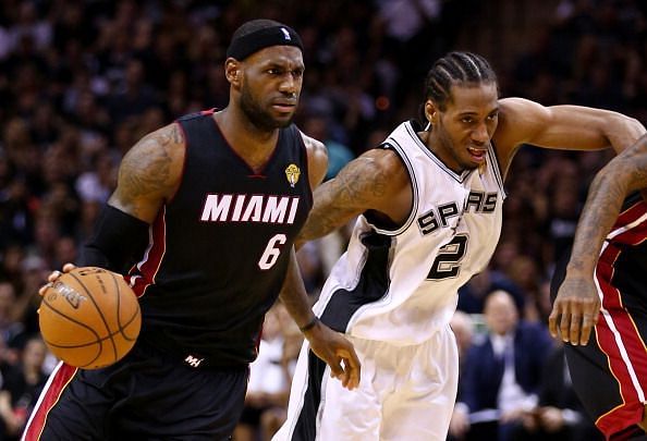 The Heat managed to win Game 2 and that was pretty much it as Dwyane Wade was nowhere near his best. They got blown off the court in the other four games as the Spurs set the record for the largest average point differential (14.0) in Finals history. Kawhi won Finals MVP as the Spurs got their revenge and somewhat washed away the pain of blowing it in 2013.