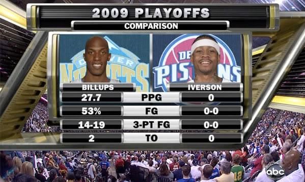 Oh, and Iverson didn’t play a minute in the playoffs as he was injured. Then they went on to joke that at least he has fewer turnover than Billups has.
