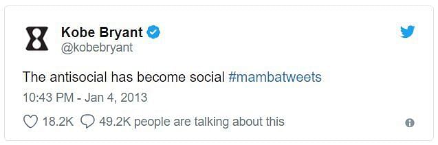 We all know that Kobe Bryant is, to some extent, socially inept. He has made it clear time and time again that he is antisocial, and has no real friends in the League. A latecomer to the Twitterverse, here's Kobe's first ever tweet -
