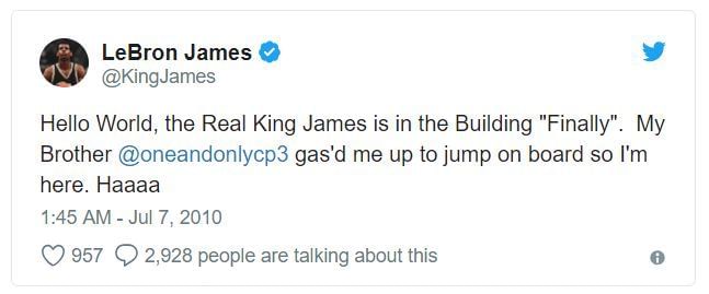 King James has been a hero for his "I will not shut up and dribble" campaign against social injustice. He has also been vocal about his support for Colin Kaepernick who has been trying to fight racism and inequality in America. With most of his tweets being about his family and teammates, this is how LeBron James announced his arrival on Twitter.
