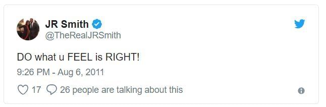 JR Smith is one of the most entertaining guys in the League. Known for his erratic and unpredictable behavior, JR Smith has had his moments in the NBA. His first tweet perfectly discloses his personality - free and fun loving. Here's JR with his daily mantra.