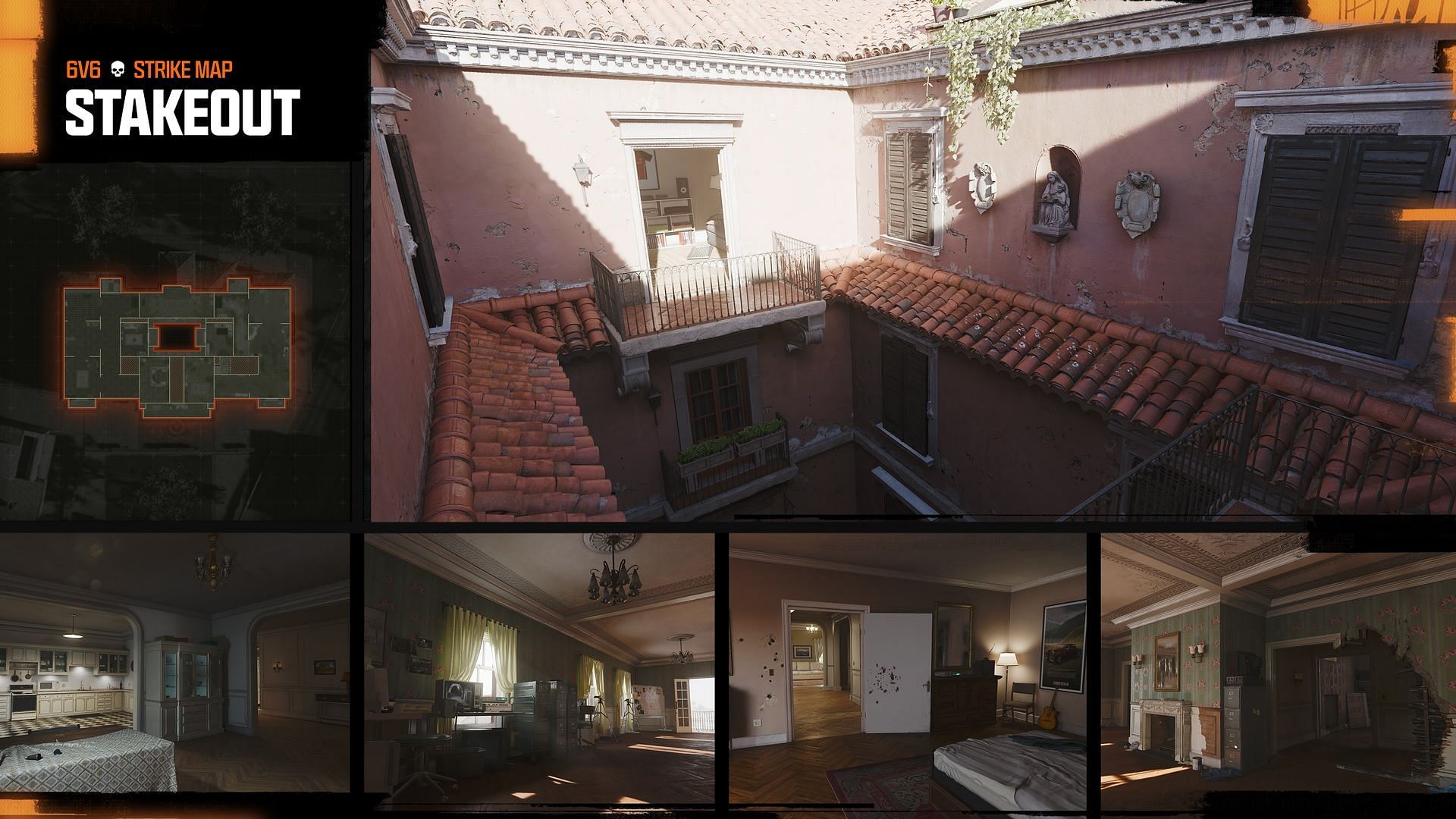 This map features a stakeout in the Mediterranean region of Avalon that has been compromised as Operators breach the small apartment, fighting through the living room, kitchen, and bedrooms, and spilling out onto the balcony.