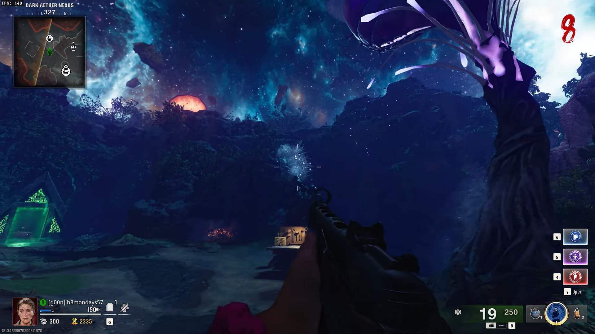 Once the zombies are taken care of, enter the Dark Aether Nexus and look for a green portal on the west side of the map. In that area, you will also find a crafting table. From there, you will notice two waterfalls, one on the right side and another on the left.