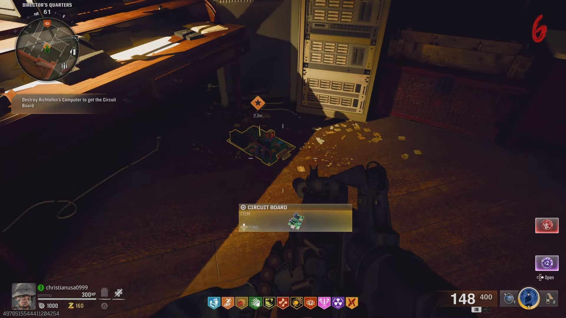 Go to Edward Richtofen’s room inside the mansion and locate his computer. Destroy the computer, and the Circuit Board will drop. You now have both the items required to fix the elevator and proceed further.