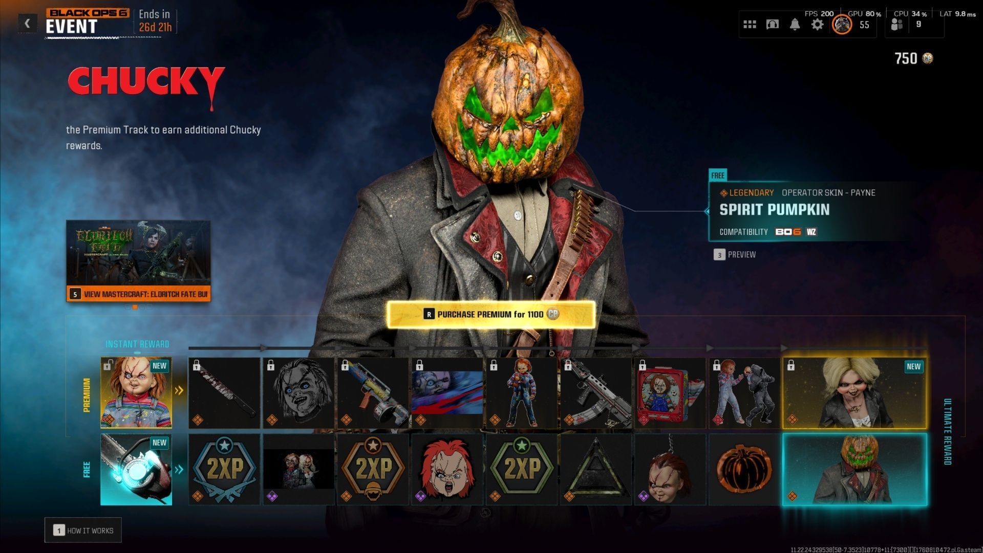 The Spirit Pumpkin Operator skin, as mentioned above, is part of the Chunky event in Black Ops 6 and Warzone. In this event, there are two sections: one free and one paid premium section. Luckily, this reward serves as the final prize in the free section. All you need to do is keep gathering XP, and the Operator skin will gradually unlock.