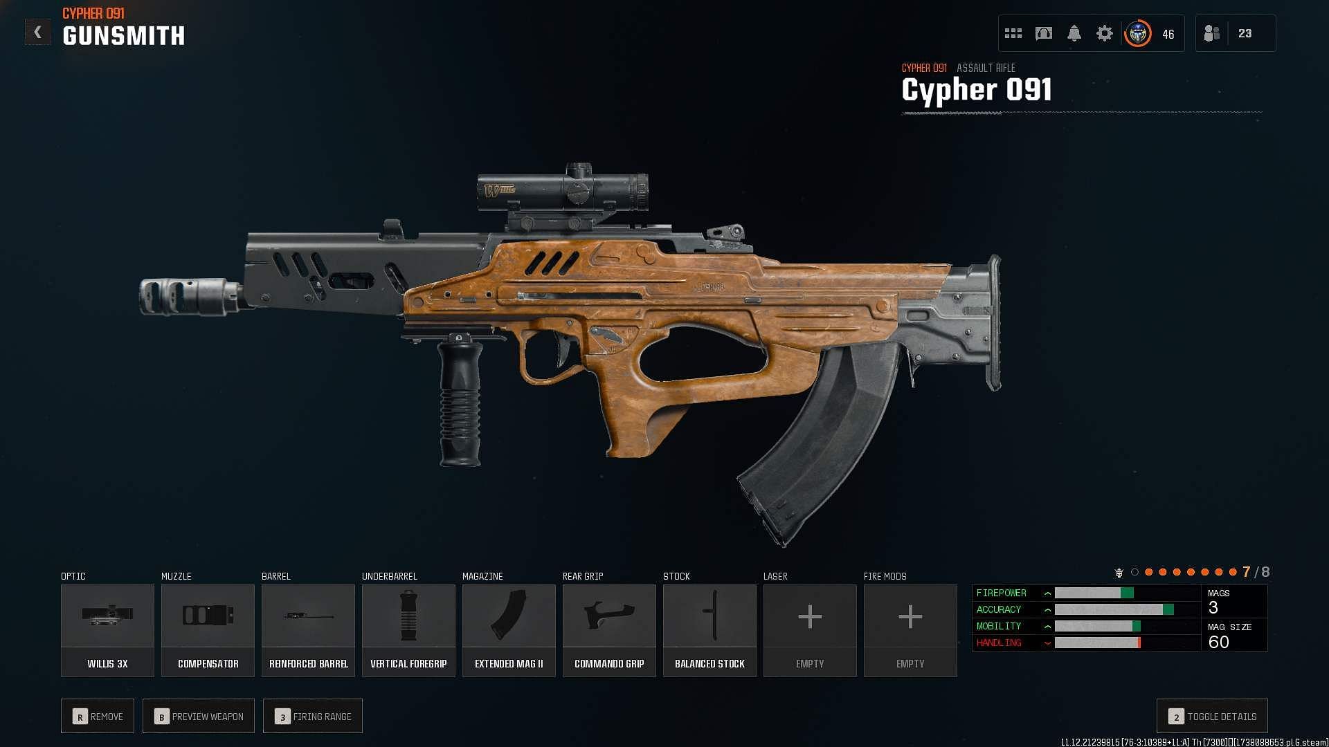 The Cypher 091 delivers excellent handling, mobility, and impressive range, that outshine most weapons in its category. Despite its high fire rate of 561 rpm, it has manageable recoil to land accurate shots in the fast-paced map of Warzone. The firearm has a magazine size of 30 rounds, allowing you to take down multiple enemies in one spray.