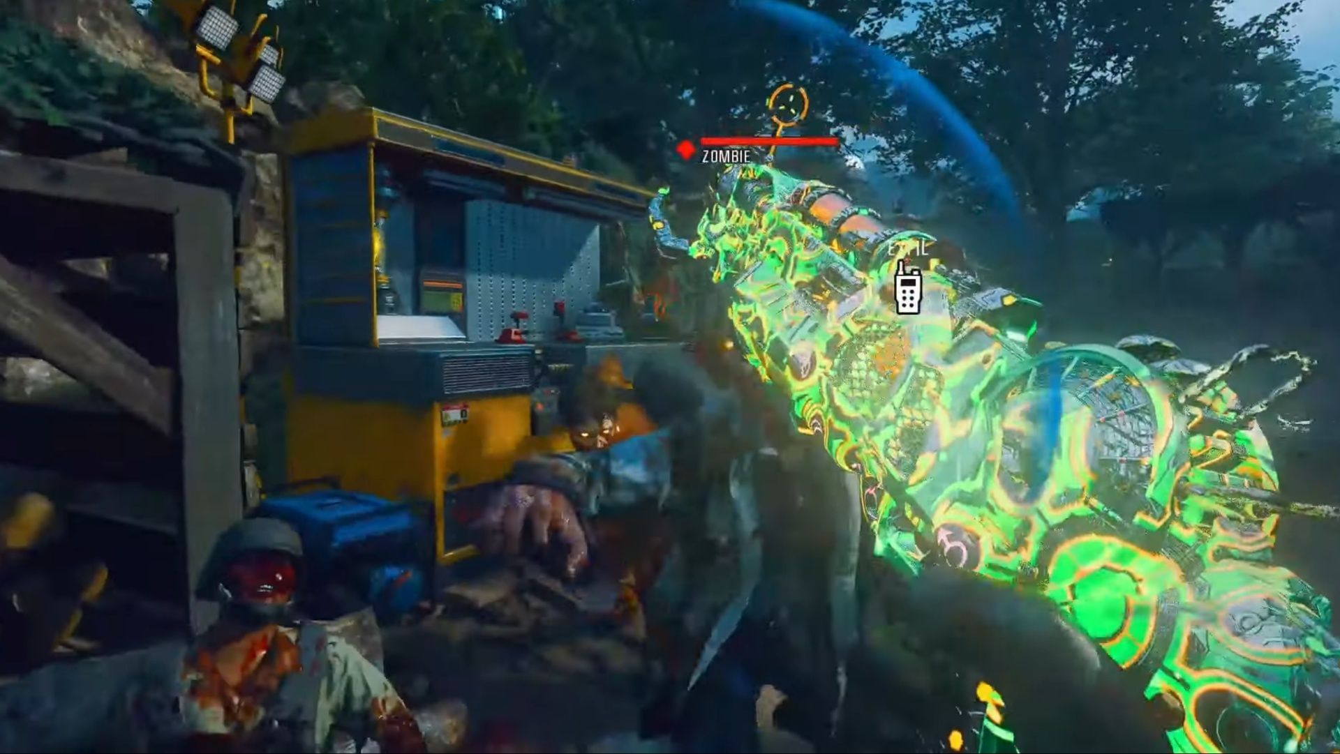 - Multiple zombies will spawn. Use the Ray Gun Mark II-R (yellow variant) to eliminate them.