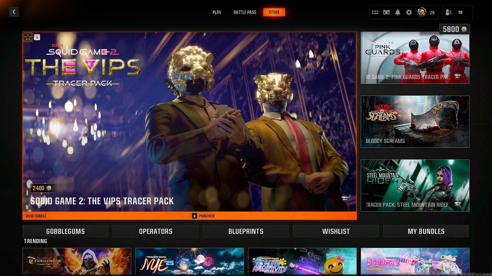 The Squid Game 2 The VIPs Tracer Pack in Black Ops 6 and Warzone costs 2400 CP or COD Points, which is around $20 in real-world currency. If you have sufficient COD Points in your account, head over to the stores of either of the titles and buy the bundle from the Featured section therein. If don't have enough COD Points, buy them from your platform's respective storefronts.