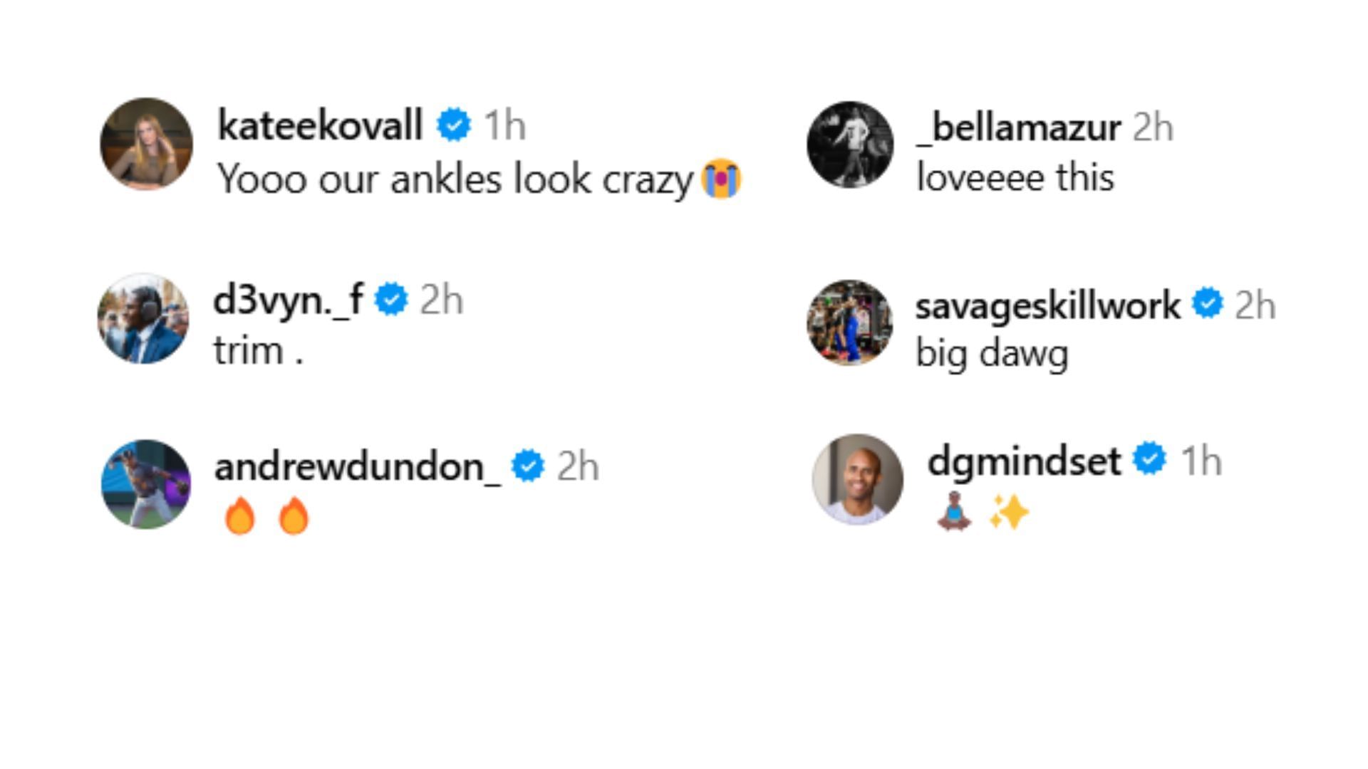 Other prominent sports personalities who posted their reactions on Olivia Miles' Instagram dump were new LSU player Kate Koval, Notre Dame running back Devyn Ford, former college baseball player Andrew Dundon, ex-West Chester guard Bella Mazur, SavageSkillWork Training founder Rayvin Miller and Internet personality Derrick Grant.