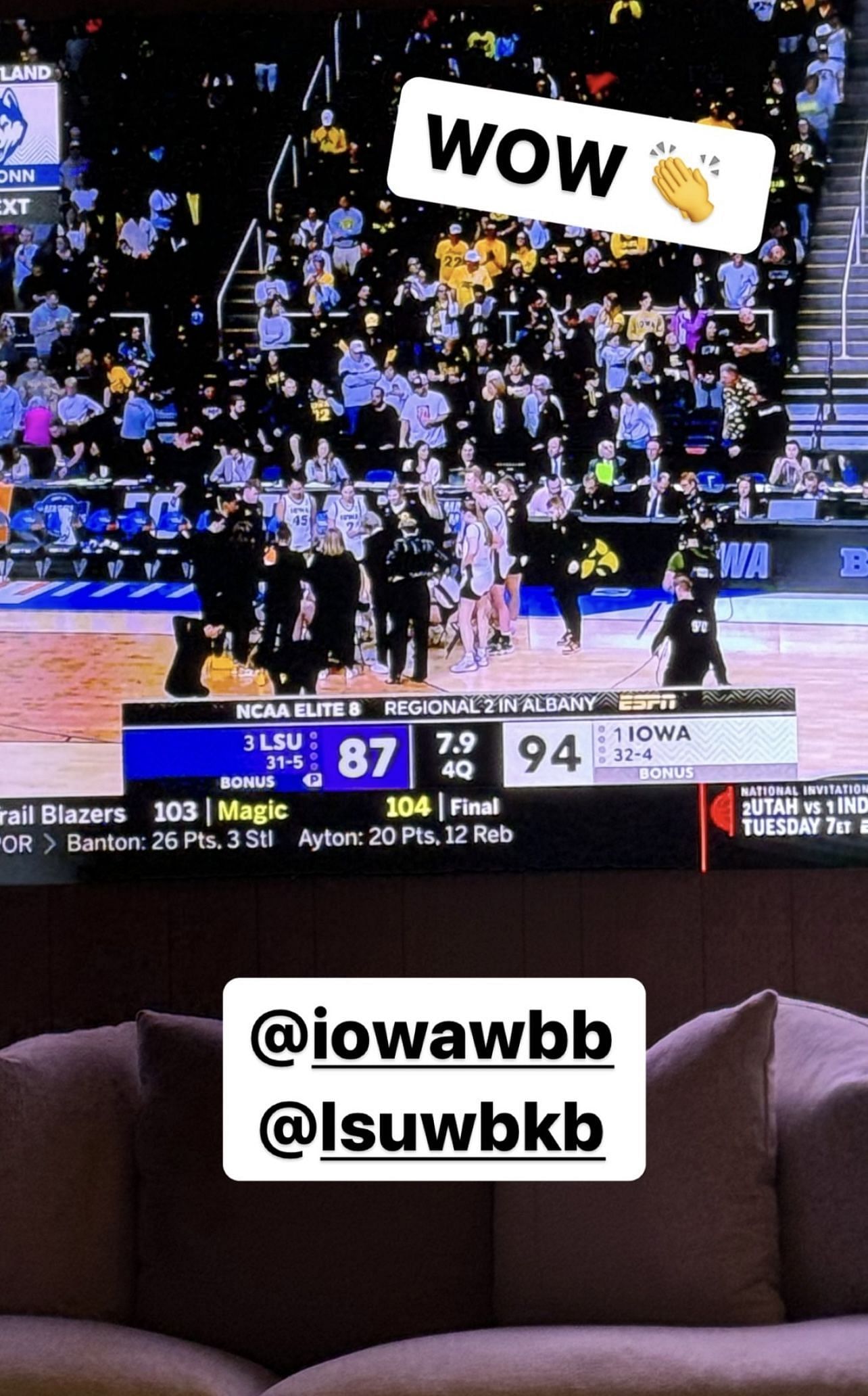 NFL legend Tom Brady was also captivated by the intensity of the matchup and how Caitlin Clark’s Iowa came up with the victory. The seven-time Super Bowl winner, who has a net worth of $300 million, posted his television screen on his Instagram story following the conclusion of the game and captioned it: