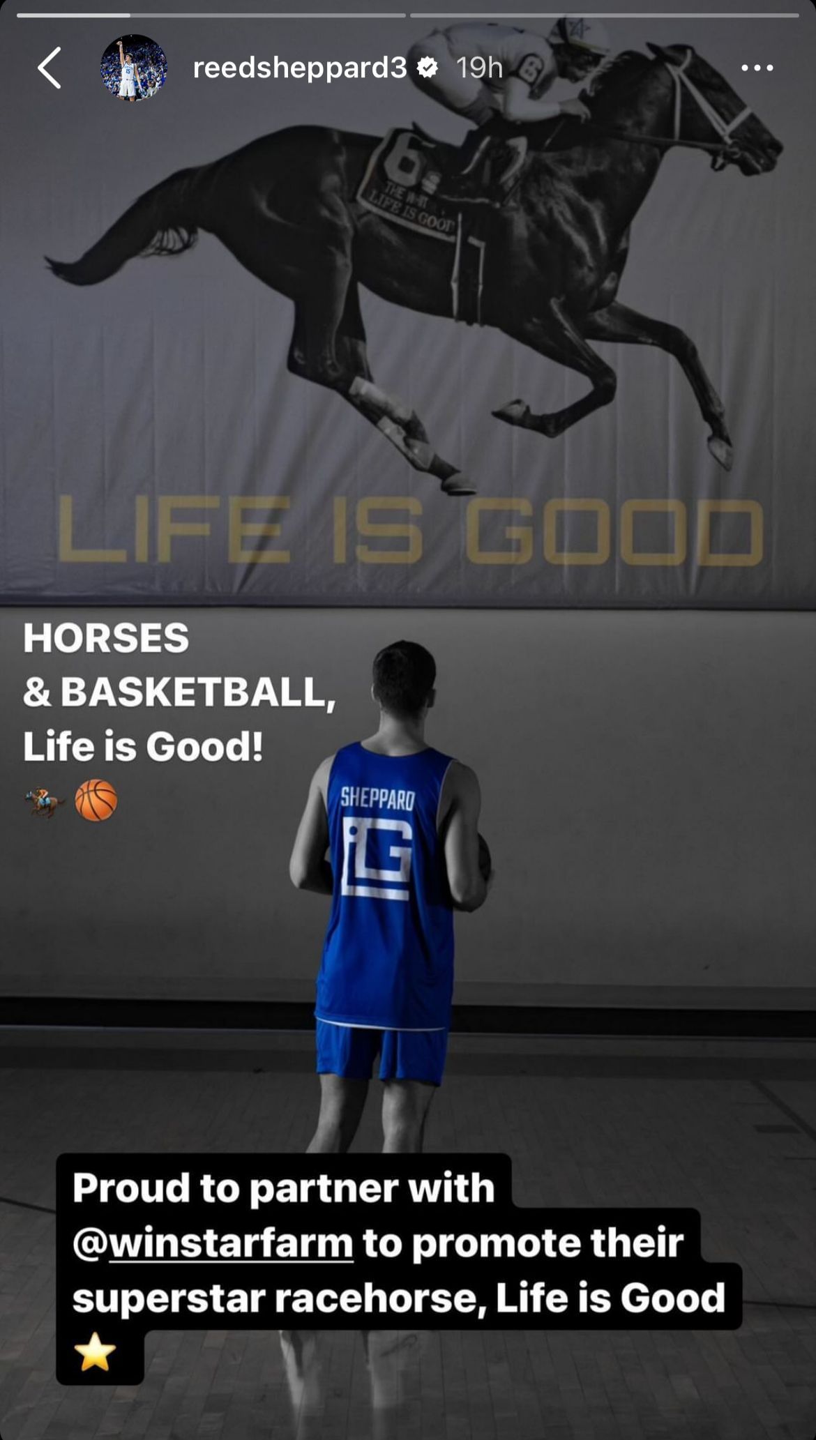 “Reed Sheppard is all about what we believe in at WinStar – being a good teammate (partner), conducting himself with humility and giving 100% in all he does,” Walden said. “We think he is a great fit for Life Is Good and WinStar Farm.”