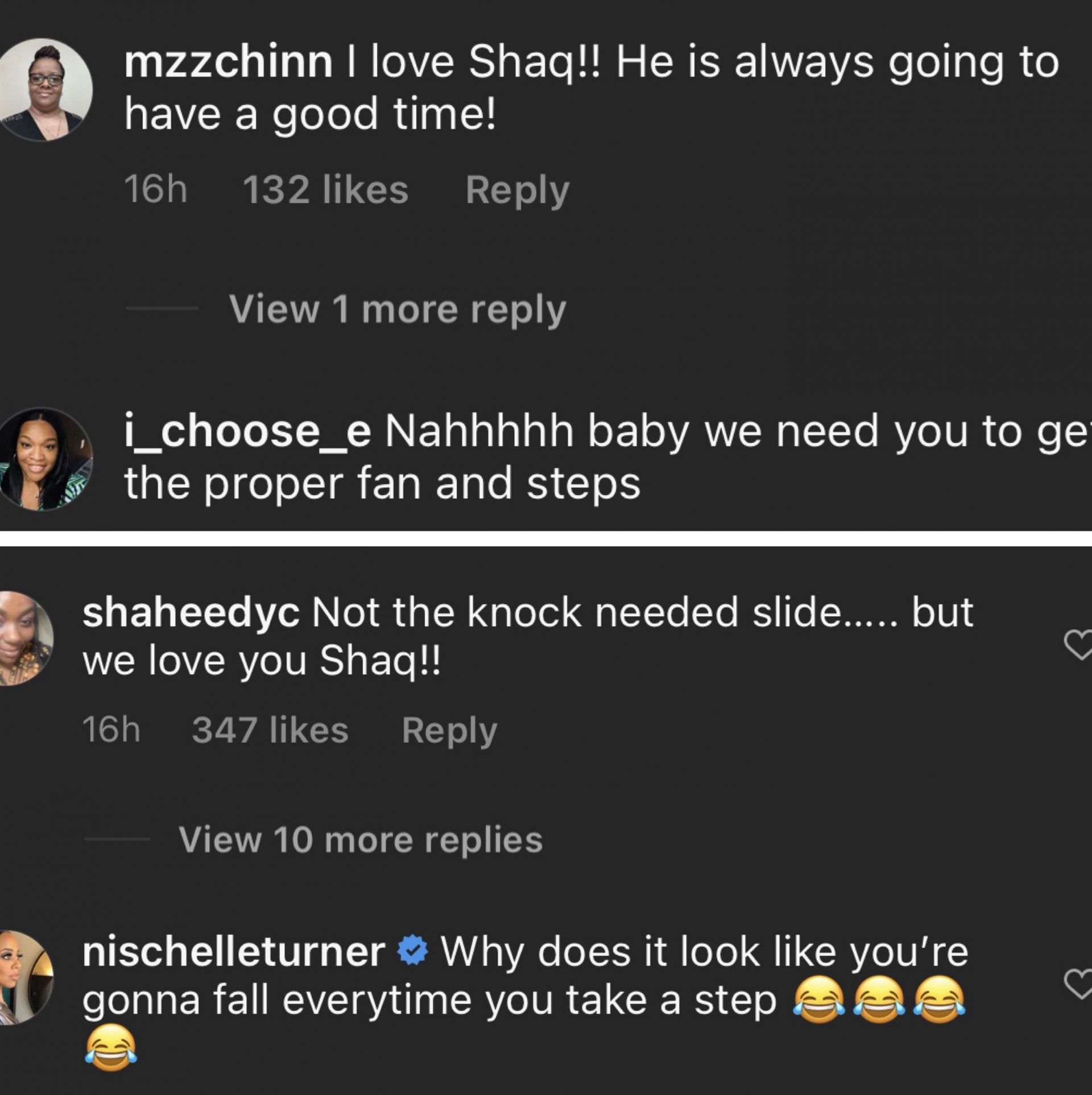 "Not the knock needed slide….. but we love you Shaq!!" A fan commented.