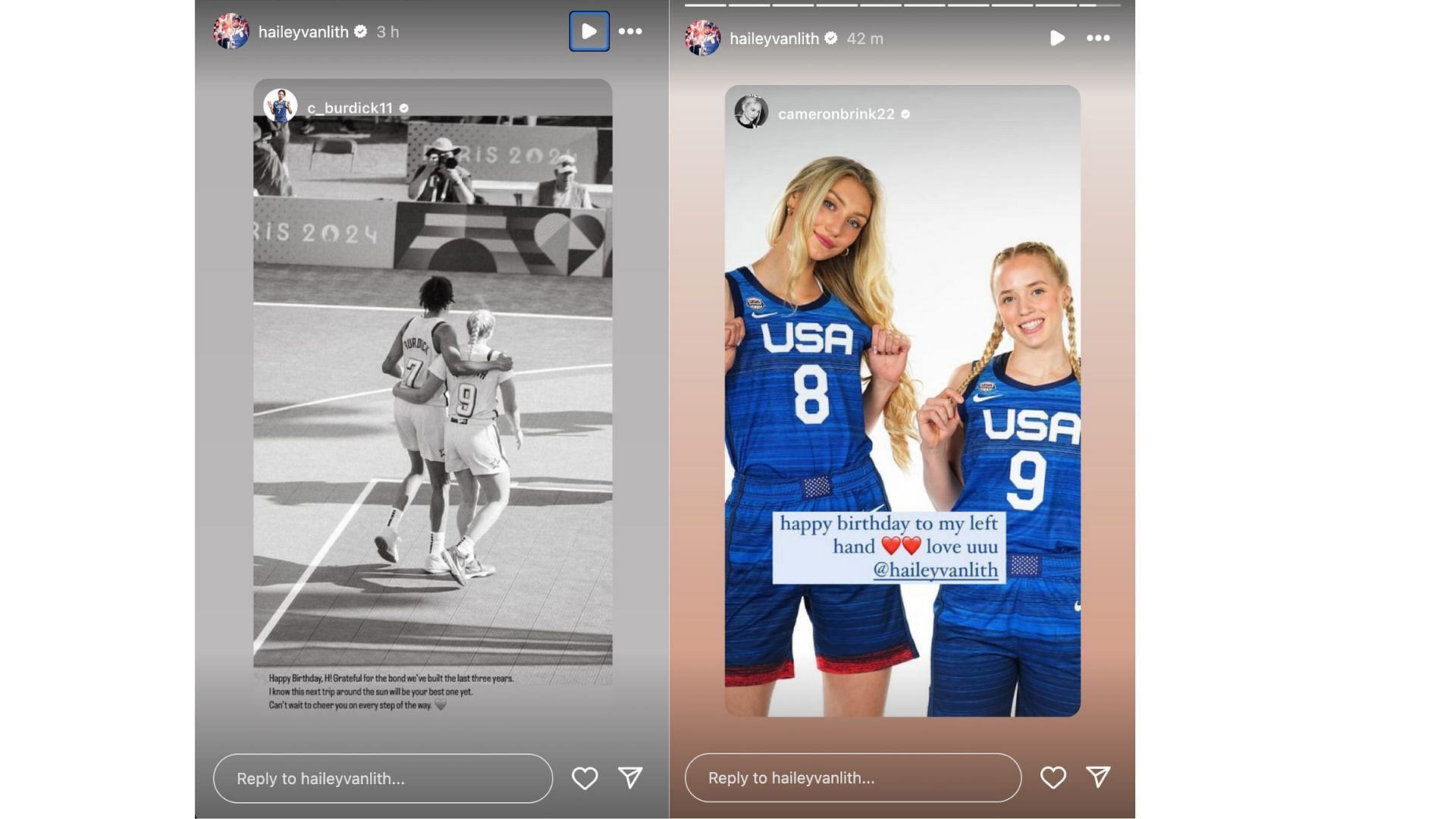 Hailey Van Lith turned 23 on Monday, and her friends and teammates joined in sending her birthday wishes on Instagram. The guard reposted the messages to her IG story, and one of them was from her Olympics 3x3 teammate Cierra Burdick.
