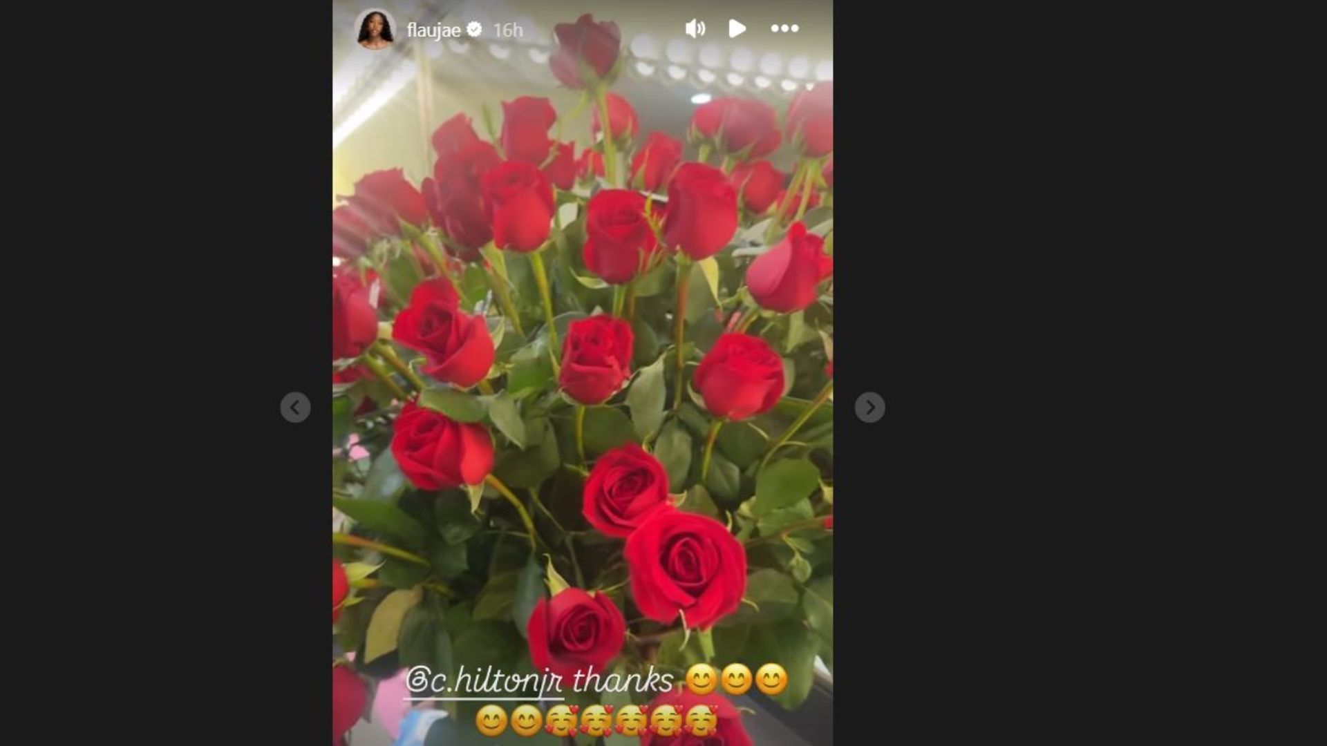 Flau’jae Johnson got a sweet surprise from her boyfriend, LSU wide receiver Chris Hilton Jr., before hitting the stage at the Roses Tip-Off concert. She shared the moment on her Instagram story on Wednesday, showing off a bunch of red roses, while thanking him for the thoughtful gesture.