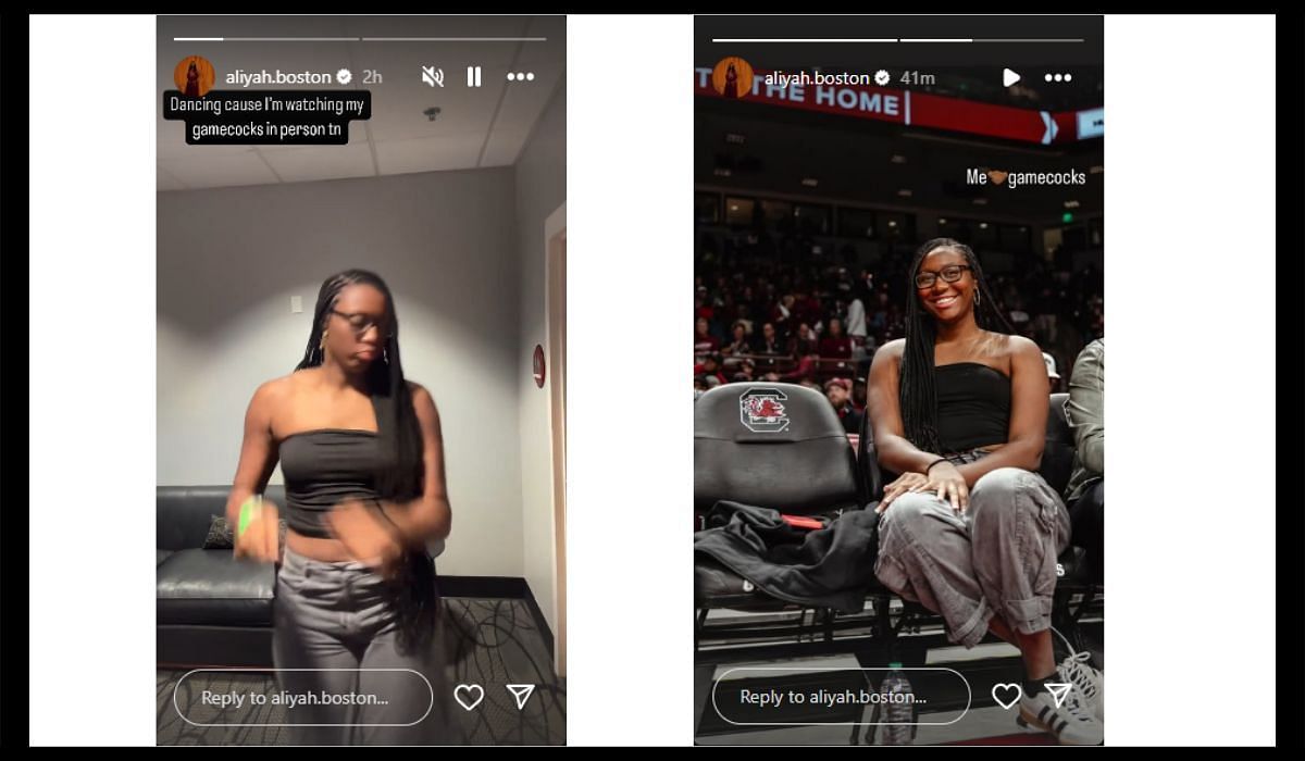 Sharing a video on her story, Boston could be seen getting boppy as she traveled to South Carolina to watch her college side host a high-flying Duke team. The 2023 WNBA Rookie of the Year was happy to watch her team and showed off her dance moves captioning the story: