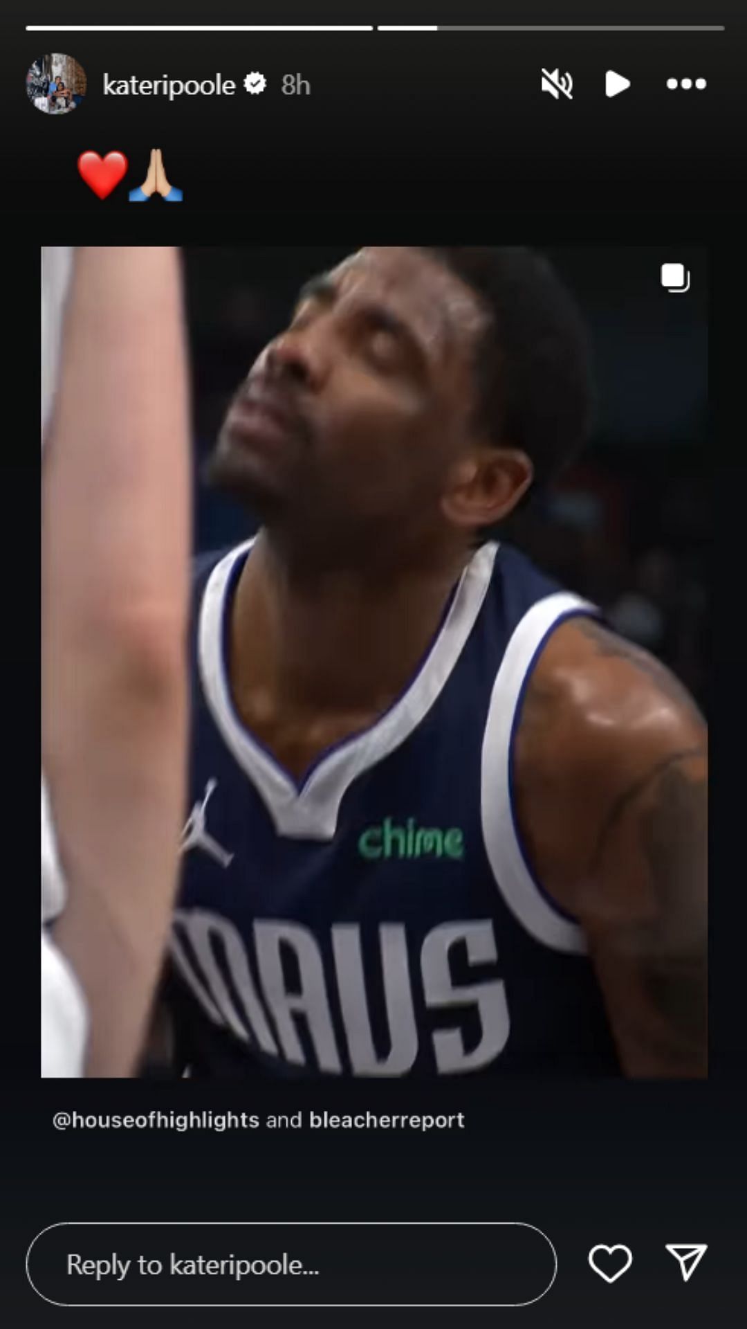 Houston Cougars Kateri Poole posted a gratuitous message for Kyrie Irving after he suffered a left ACL injury during Monday's game against the Sacramento Kings. The crafty guard was driving for a layup in the first quarter when he sustained the injury.