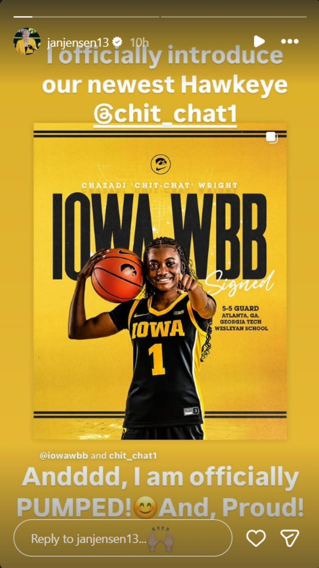 Jan Jensen reposted it on her story and shared her excitement with the Iowa nation on IG:
