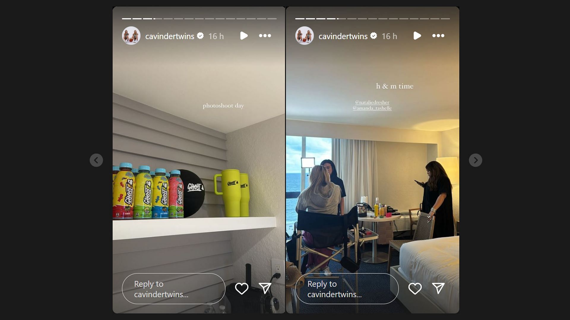 The next snap posted on their story featured a few bottles provided by Ghost before the final snap showed them getting ready for the shoot.