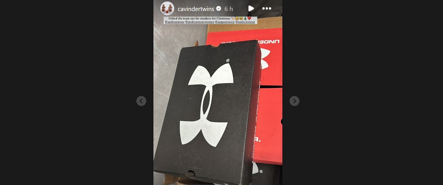 The twins shared a story on Instagram to show off their gift for their teammates, admitting the sneakers they gifted were their favorites from the wide range of shoes sold by Under Armour.
