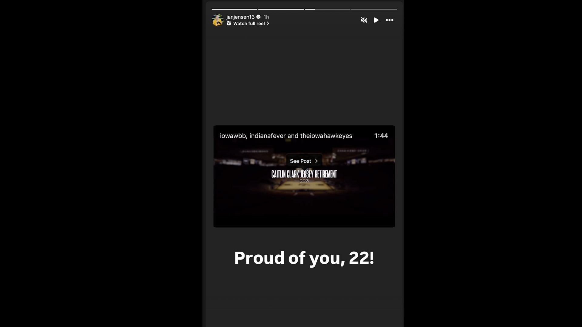 Jansen, who played a major role in Clark's development at Iowa, reshared Iowa's montage of the ceremony on her Instagram story. In the caption, she expressed her pride in Clark's achievement.