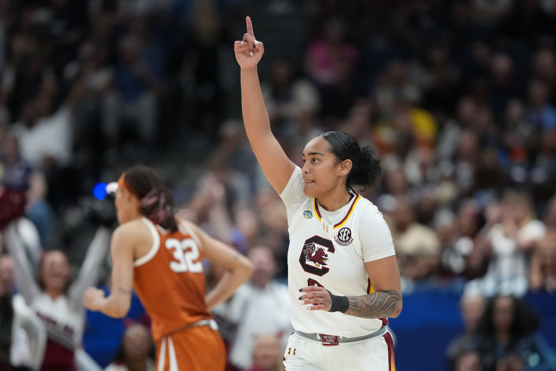 Joyce Edwards helped South Carolina grab a 38-35 lead at the break, scoring eight points in the first half. Te-Hina Paopao matched Edwards' offensive production, also scoring eight points in the first two quarters.