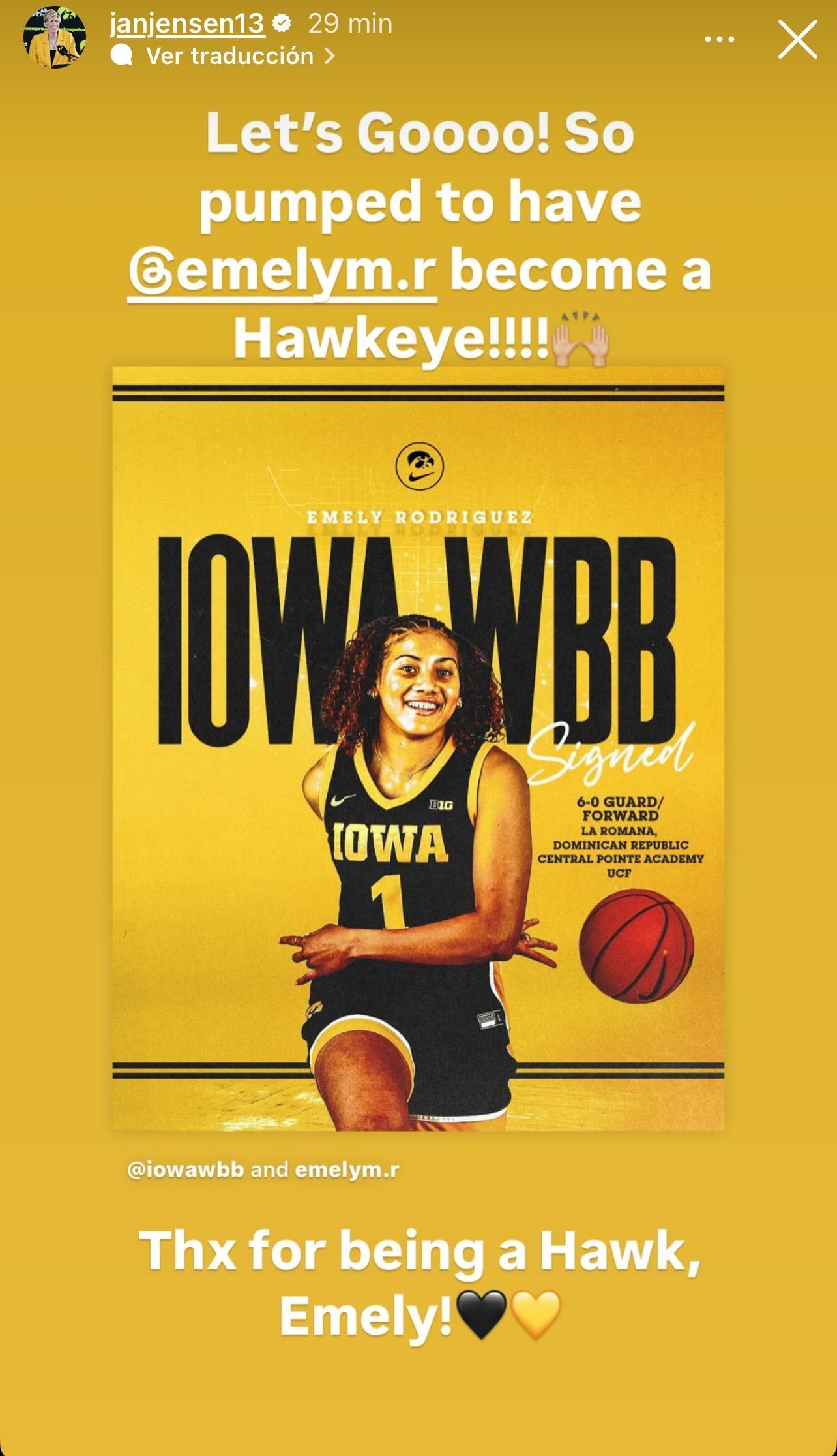 "Let's Go! So pumped to have @emelym.r become a Hawkeye!!!! Thanks for being a Hawk, Emely!" Jensen wrote.