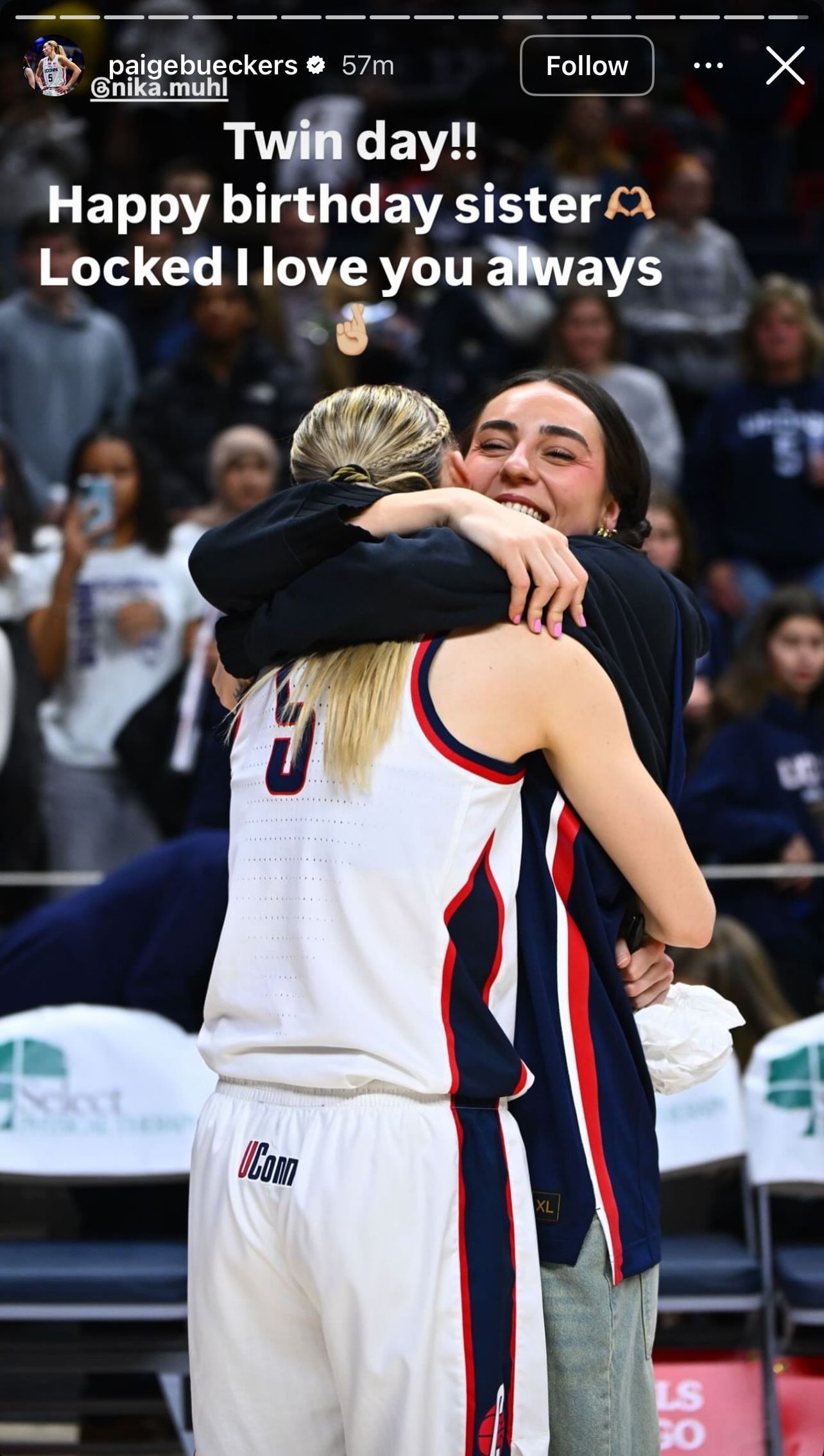 "Twin day!! Happy birthday, sister. Locked I love you always," Bueckers wrote with heart-shaped hands and crossed-fingers emojis.