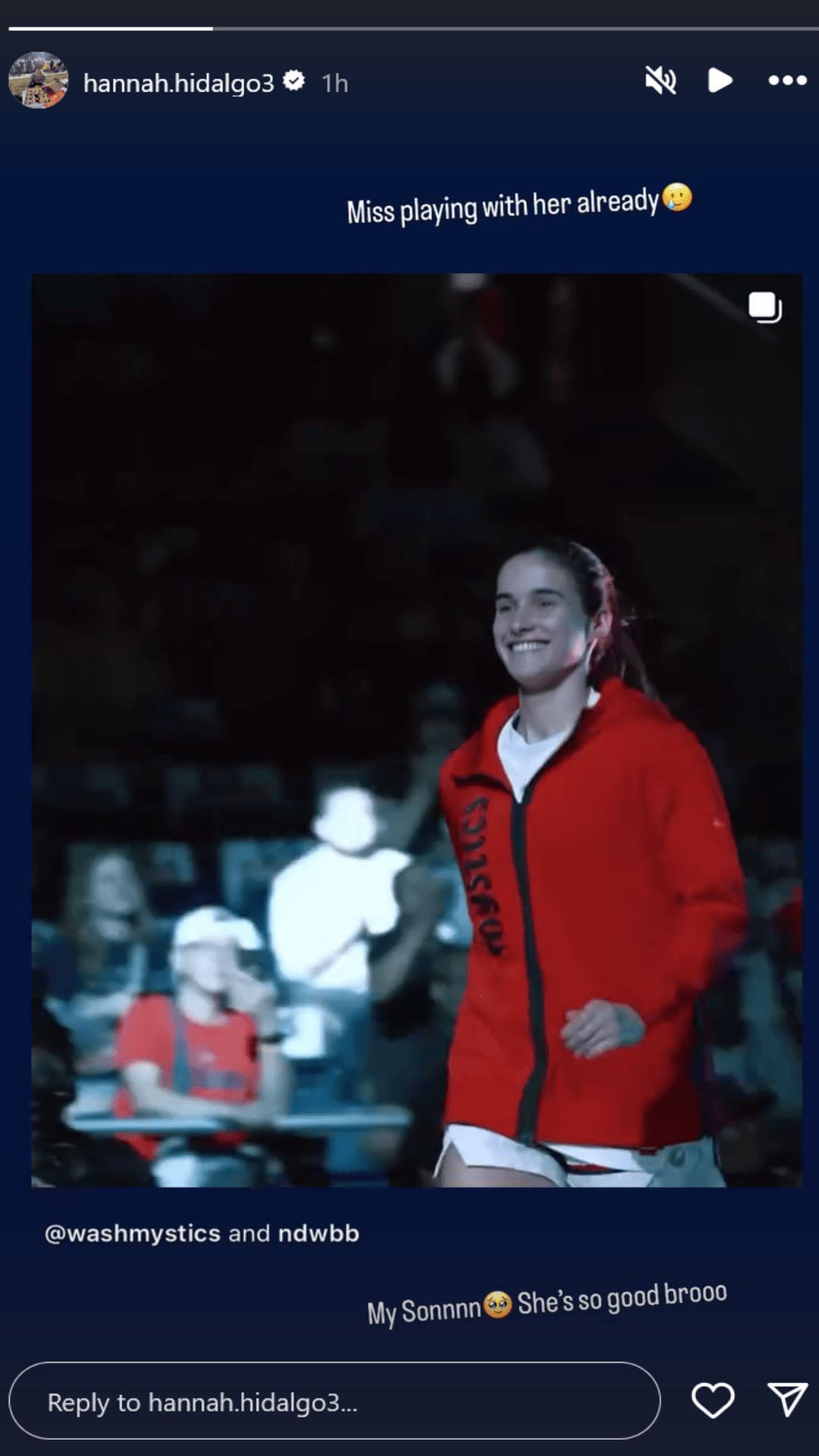 Hidalgo showed her support for Citron on her Instagram story, posting a video of her going out onto the court with a short caption.