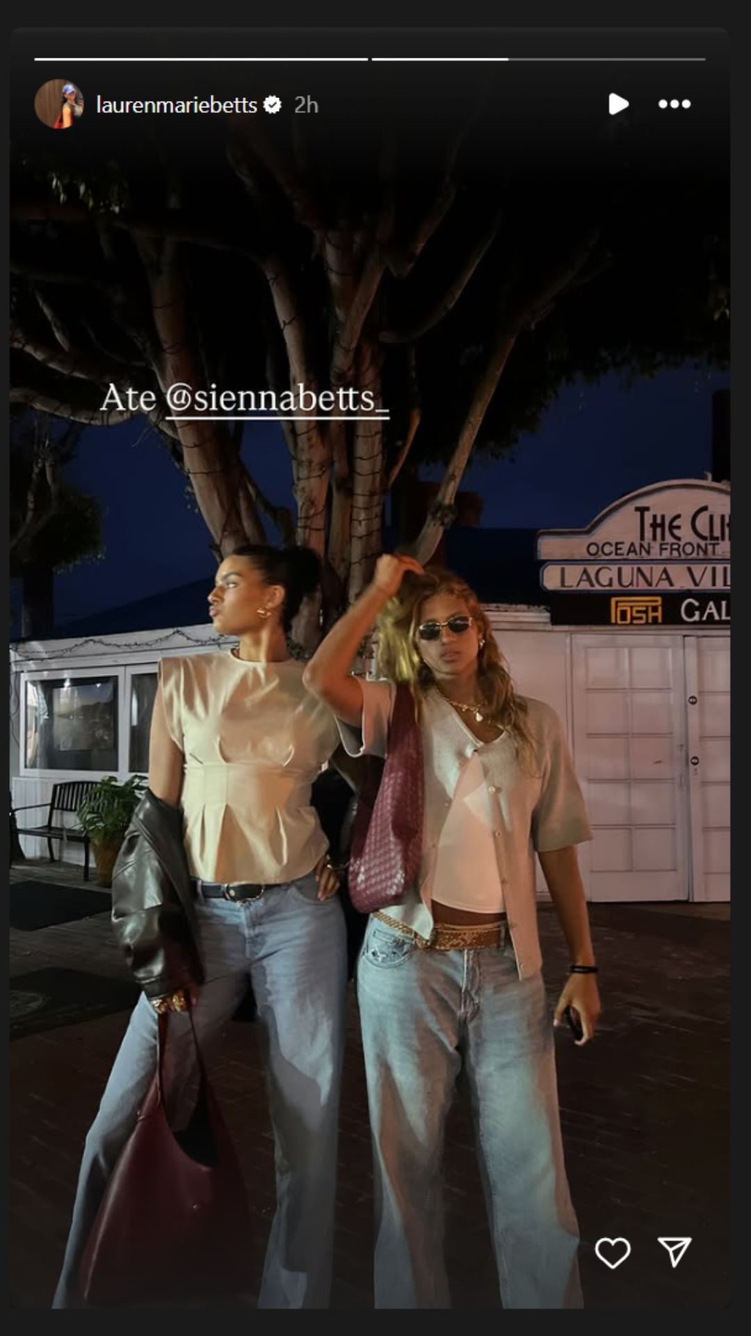On Tuesday, Lauren posted a photo with Sienna on her Instagram story as the two sisters posed together in casual outfits. Lauren added a one-word caption to the snap.